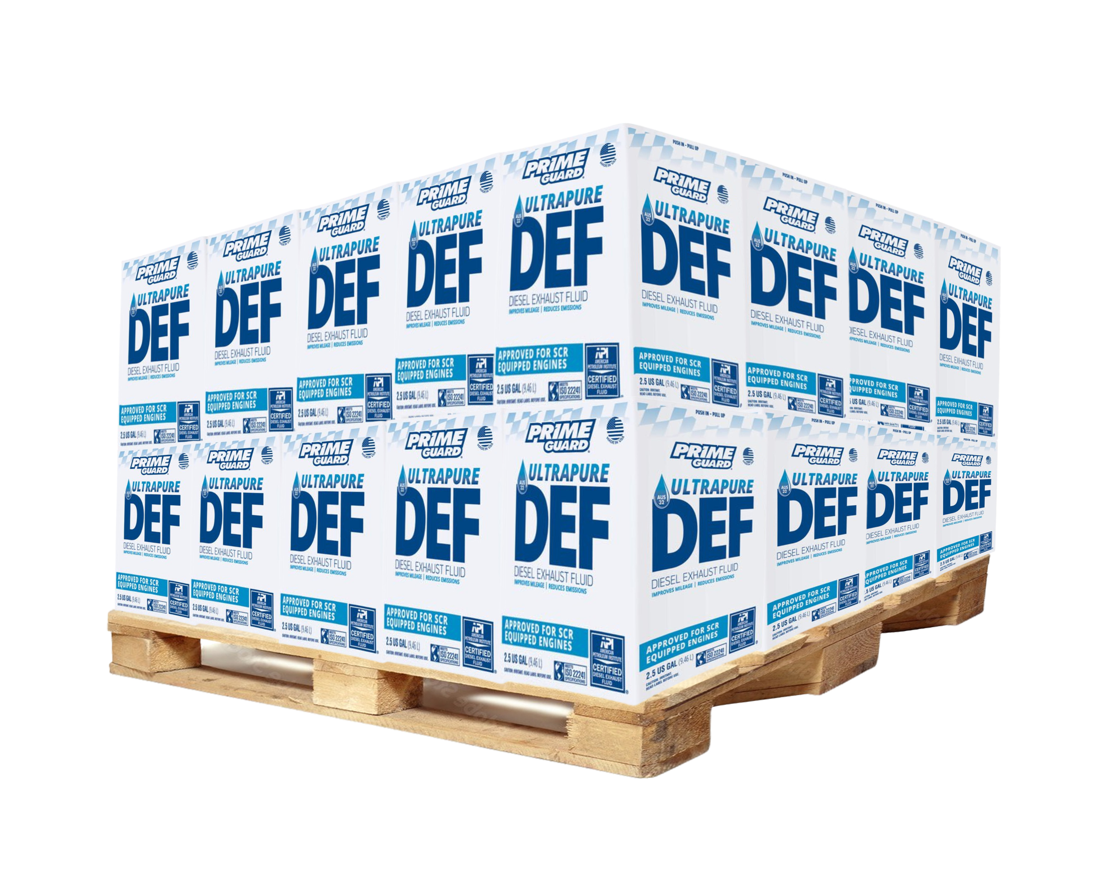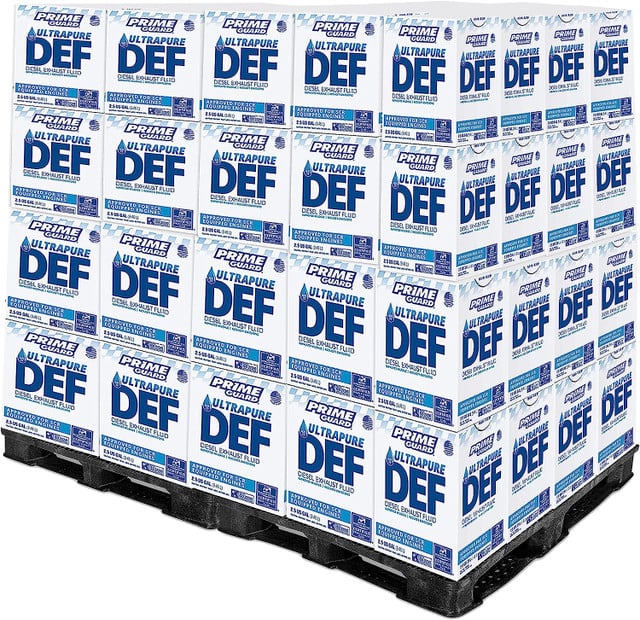 Prime Guard DEF Diesel Exhaust Fluid is an 40 pack of 2.5 Gallon Jugs designed to enhance fuel efficiency in diesel engines with SCR systems. Meeting stringent standards including EPA, ISO 22241, and DIN 70070, it ensures optimal purity. This ultra-pure, formaldehyde-free solution effectively reduces nitrogen oxides (NOx) emissions. Each jug comes with a dispensing nozzle for easy use. This API certified product is an environmentally friendly solution contributing to a healthier planet.